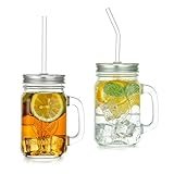 Frascos De Vidrio Vintage Con Tapas Frascos De Vidrio De 500 Ml Con Pajita Reutilizable Juego De 2 Frascos De Almacenamiento Tazas De Vidrio Con Asa Para Beber Conserva El Desayuno, La Avena, La Merie