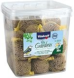 - 30 bolas de grasa de 90 g en mallas, ricas en proteínas y grasas, ayuda esencial para los pájaros del jardín en cualquier época del año. Vienen en un cubo transparente con asa.