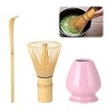 - Juego de 7 batidos de matcha rosa: 1 cuenco de cerámica (chawan) de 560 ml, 1 batidor de bambú, 1 cuchara de bambú (chashaku), 1 soporte para batidor de cerámica, 1 soporte de cerámica, 1 paño de algodón (chakin), 1 tamiz de polvo matcha. Incluye todos los accesorios