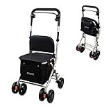 - ✔️SEGURIDAD: Uno de los puntos fuertes del andador shopping es su seguridad, ya que cuenta con un freno de seguridad o estacionamiento y con 4 ruedas con buena rotación siendo las delanteras dobles. Gracias a sus 4 apoyos este andador para ancianos te aportará la estabilidad y el movimiento ideal