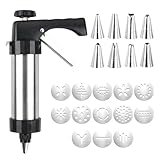 • ❤【Materiales duraderos y seguros para los alimentos】Fabricada con acero inoxidable de alta calidad, libre de BPA y plástico ABS, nuestra prensa de repostería es segura, inodoro y duradera. El mango ergonómico proporciona un agarre cómodo, lo que hace que sea fácil de usar sin forzar la mano.