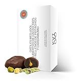 - DÁTILES MEDJOOL RELLENOS CON PISTACHO Y CARDAMOMO: Disfruta de la larga tradición de Oriente Medio con la exclusiva combinación de ""La fruta del rey"", los dátiles Medjool, rellenos de pistacho y cardamomo, y recubiertos con chocolate 100% cacao de origen Oko, República Dominicana. Esta mezcla ofrece un equilibrio perfecto entre dulzura y sabor exótico, ideal para los paladares más exigentes.