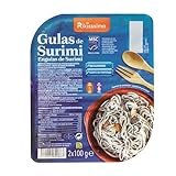 - Surimi en forma de angulas a base de carne de pescado prensada, sin gluten, para acompañar en gran variedad de platos, canapés, revueltos…