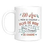 - Las tazas de café HALUMI son regalos para Persona del cumpleaños con la cita "80 años menos cabrito más bide pero tanto encanto".