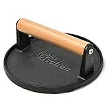 - Hierro fundido primera calidad - la maquina hacer hamburguesas está diseñada para durar toda la vida con cuidado adecuado. Para mantenerla antiadherente, lave la maquina de hamburguesas con agua y luego sazone con aceite de cocina. La capa sazonada evitará que la carne absorba exceso de hierro.