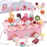 Heladeria Juguete, Carrito Helados Juguete, Tienda de Helados, Comida de Madera Juguete, Juego de Imitación, Juguete Montessori Helados Madera Juguete Juego Educativos Regalo para 3 4 5 6 años