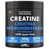 Bandini® Creatina en Polvo Micronizada - Monohidrato de Creatine 100% Puro para Rendimiento y Potencia Muscular - Sin Sabor - Incluye dosificador - 88 Porciones - 300 gramos Vegano - Creatine Powder
