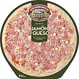 - Elaborada con harina de trigo, 22% de mozzarella, 19.8% de puré de tomate y 11% de jamón cocido, además de aceite de girasol y de oliva virgen extra. ¡Todo ello sin perder el sabor tradicional!