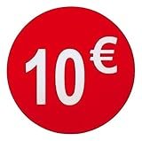 - DISEÑO: Etiquetas redondas de color rojo brillante con el valor de '1€' en texto blanco destacado