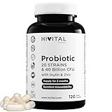 - 👍 EXCELENTE FÓRMULA a base de una mezcla exclusiva de 20 cepas probióticas con 40 Mil Millones de UFC por dosis. También hemos añadido Inulina un potente prebiótico a base de fibra soluble que favorece el crecimiento y la adhesión de los microorganismos a la microbiota intestinal, y Zinc puro procedente de Gluconato de Zinc. GRAN CANTIDAD DE PRODUCTO AL MEJOR PRECIO: Ofrecemos 120 cápsulas veganas gastroresistentes por bote, tratamiento para 2 meses.