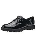 Tamaris Zapatos Veganos de Cordones de Caña Baja para Mujer, Negro Estructura de Charol, 38 EU